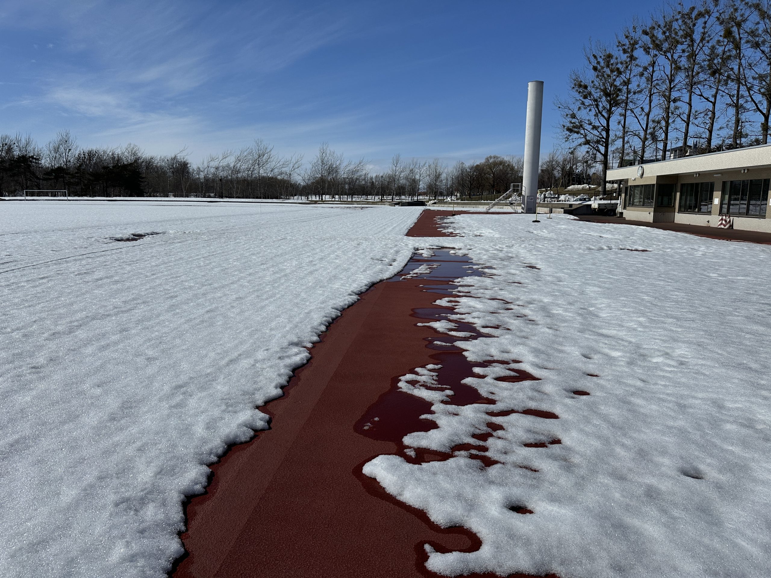 ここ数日の天気でさらに雪解けが進み、歩くスキーコースの維持が難しくなっており、積雪不足により3/10(火)をもって終了予定とさせていただきます。